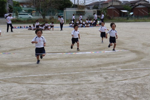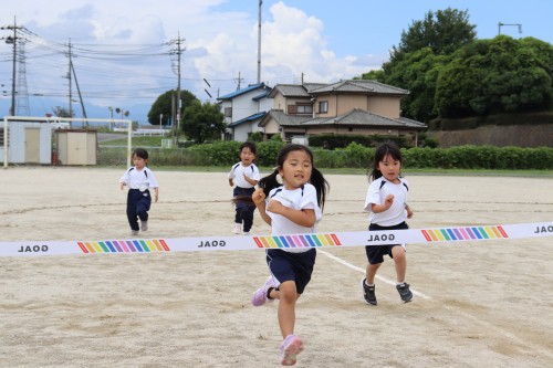 お遊戯やかけっこなどニコニコ楽しみながら行ない、お客さんになった子達もおゆうぎを真似を