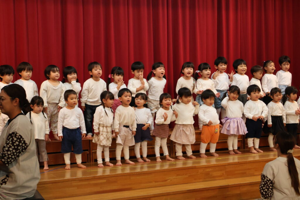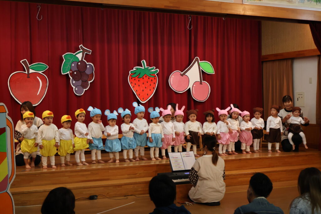 今年度も二部構成で発表会を行いました。まずは第一部10月25日:1歳児・2歳児・4歳児の様子をお伝えします。