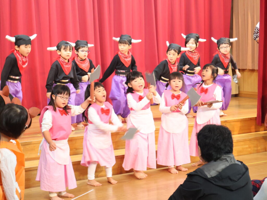 「あと何日寝たら発表会?」と指折り数えながら楽しみにしていた発表会。発表会に向けて、お友だちや先生と一緒に楽しみながら取り組んできました。本番当日はお家の方が見に来てくれ、照れくさそうにしながらもとても嬉しそうだった子ども達。ステージの上に立った子どもたちの姿はいつにも増してキラキラと輝いていました。
